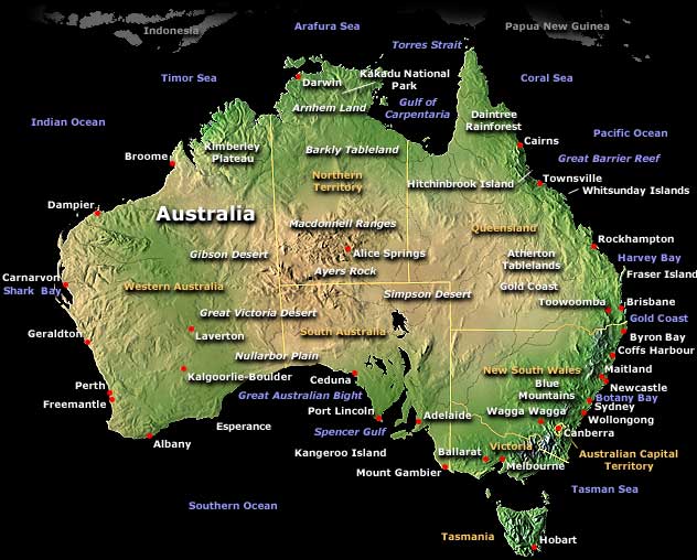 Dentro de Oceanía, un continente dominado por el agua, Australia con sus 4.000 kilómetros, emerge como la única isla cuya extensión nos hace olvidar su carácter insular. Para facilitar el estudio del resto de las islas de este continente, fue necesario agruparlas bajo unos términos más amplios como son los de Micronesia, Melanesia y Polinesia. La población aborigen llegó a Australia hace unos 40.000 años, aunque hay estudiosos que atrasan su llegada hasta los 60.000. Utilizando canoas y toscas embarcaciones, estos primitivos viajeros arribaron a las costas australianas en varias oleadas, desde distintos lugares de la vecina Asia. Tal vez uno de estos lugares de partida, pudo ser la India, ya que con la población india comparten ciertos rasgos como su nariz ancha y algo aplastada o tez oscura. Su increíble capacidad de adaptación al medio les permitió alcanzar una población aproximada de un millón de habitantes a la llegada de los europeos a principios del siglo XVII, en la actualidad sólo quedan unos 200.000 primitivos australianos.