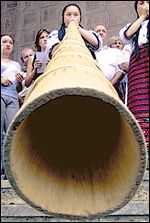 BOZAINA: No hay que viajar muy lejos para encontrar similitudes con el didgeridoo en España. Esta foto es de las bozainas, instrumento medieval típico de la Semana Santa de Chinchilla, en Albacete. Aunque su sonido no es el drone desde luego es una tentación intentarlo. Tienen una pinta increíble.
